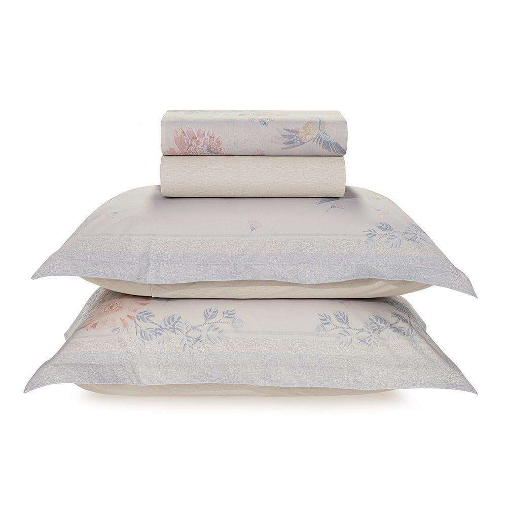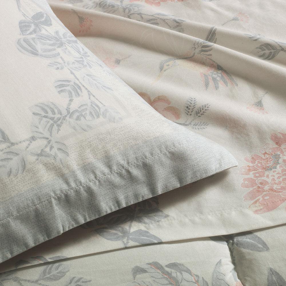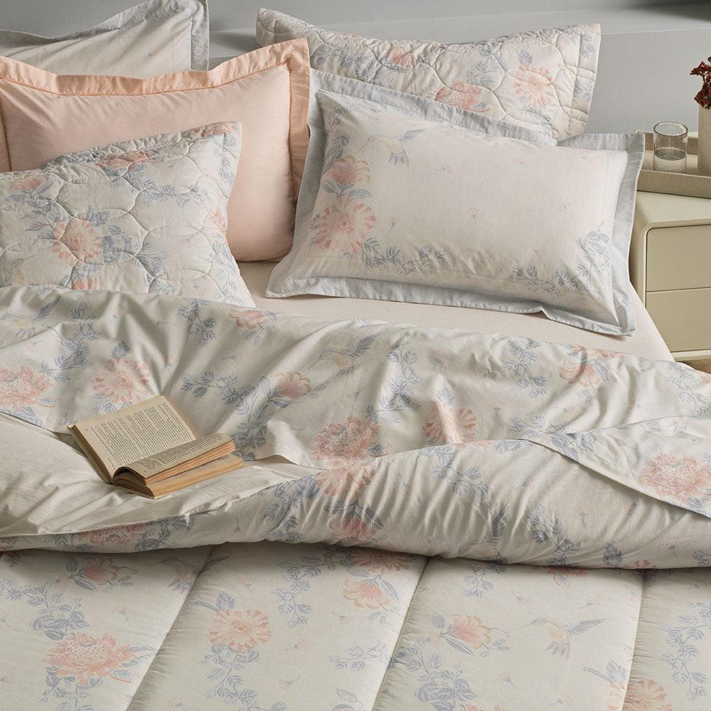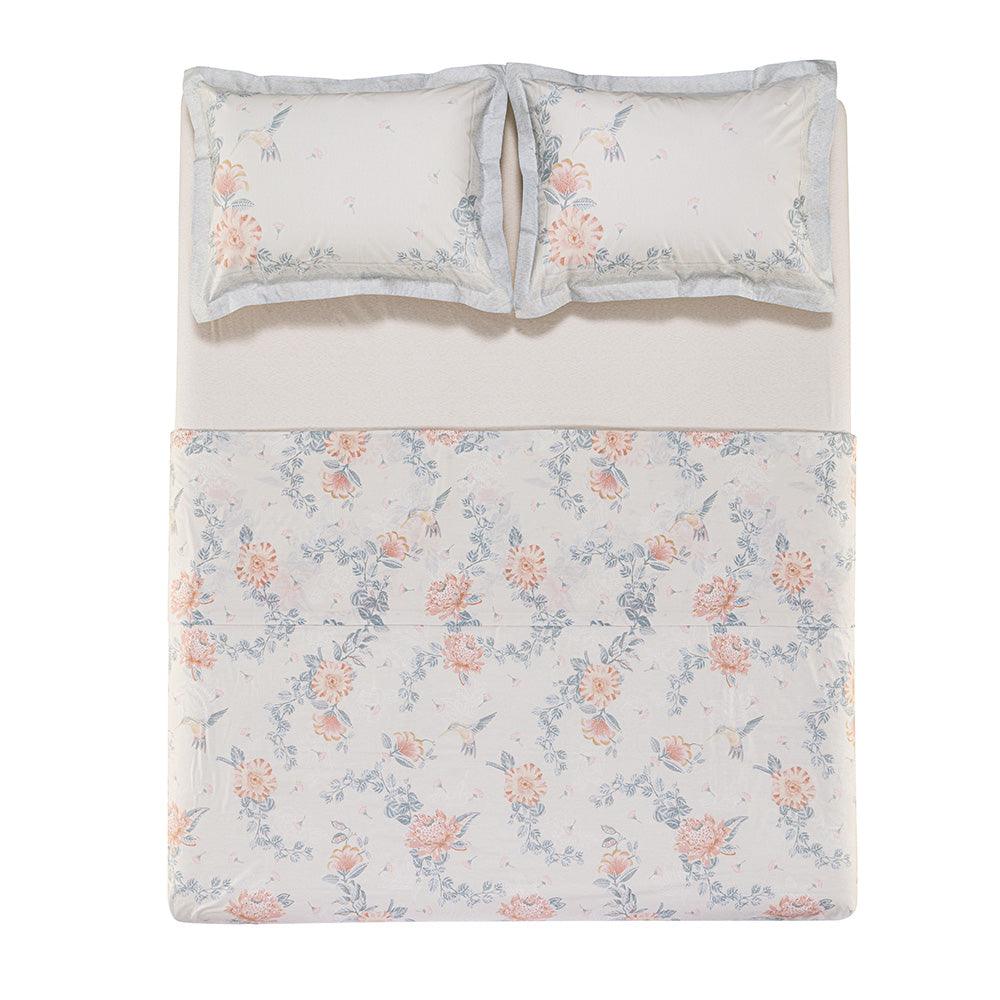 O Jogo de Cama Irina tem estilo romântico e delicado que combina com os mais variados gostos, com cores claras e desenhos florais.
