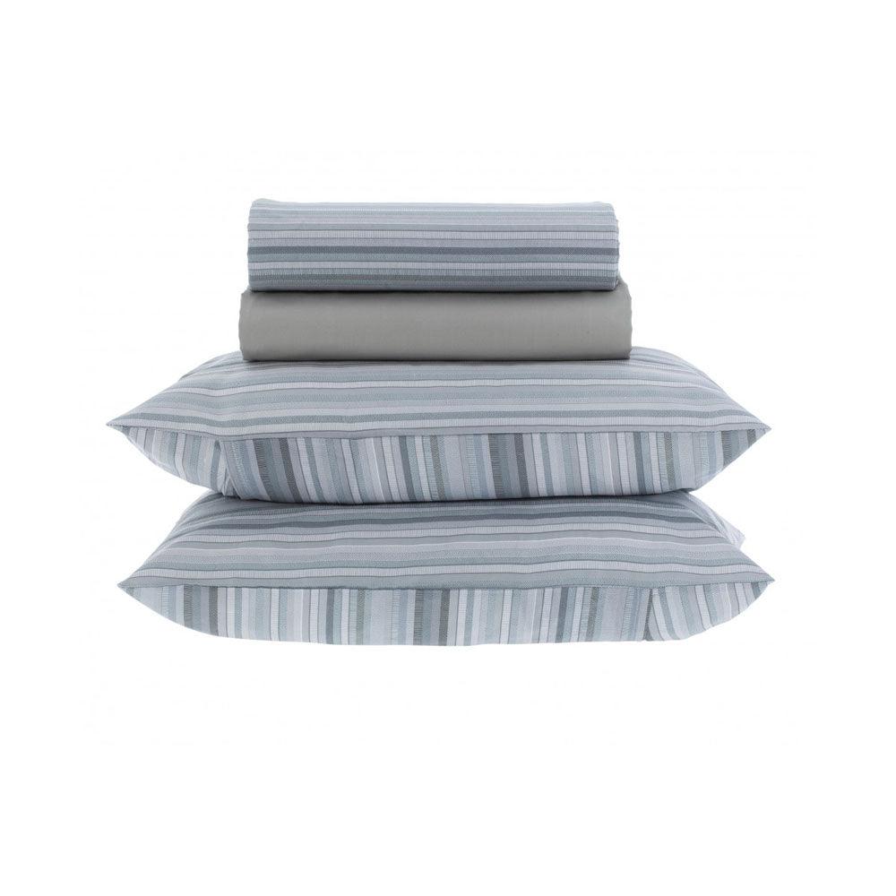 O Jogo de Cama Kacyumara True tem estilo moderno e minimalista que combina com os mais variados gostos, com cores leves e lindo listrado.